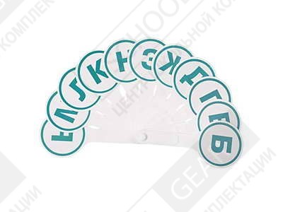 Представляет собой комплект пластинок, соединенных аналогично соединению деталей веера, с буквами, обозначающими согласные звуки русского языка.