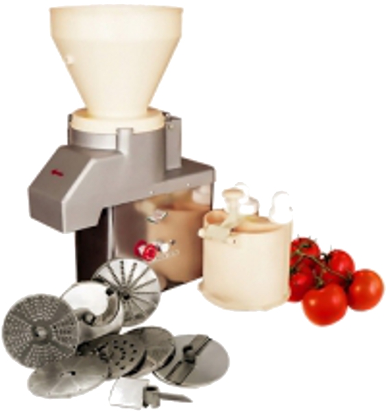 Машина предназначена для протирки вареных продуктов (картофеля, свеклы, моркови, жидких каш, гороха, фасоли, яблок, творога и т.д.), нарезки сырых и вареных продуктов (картофеля, свеклы, моркови, лука, репы, брюквы, огурцов, томатов и т.д.) на частицы различной геометрической формы, тонкого измельчения картофеля, моркови, а также шинковки капусты. Машина протирочно-резательная, с полным набором рабочих дисков для резки (10 наименований) и протирки, производительность 350кг/ч при нарезке сырого картофеля брусочками сечением 10х10, производительность 600кг/ч при протирке картофеля, 1кВт, 380В, размеры 480х300х720.